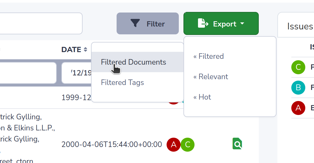 Quickly export everything relevant to your case. Filter by AI tags or by relevant searchable fields to easily get all the documents, tags, or explanations you need.